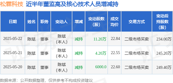 松霖科技近半年内的董监高及核心技术人员增减持详情如下: