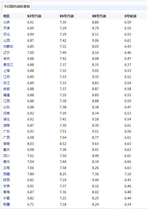 附:全国各省市加油站92,95号汽油以及0号柴油价格(仅供参考)