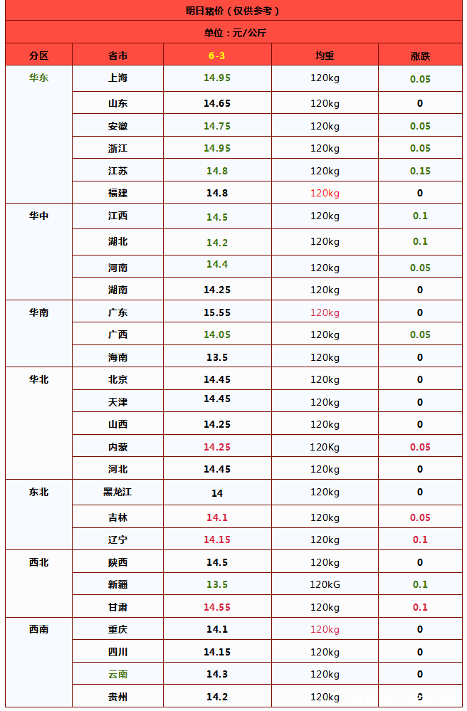 因此,在供应博弈下,理性来看,受屠宰场调价收猪,预计,6月3日,标猪报价在14.33元/公斤,市场以弱稳震荡为主!但是,节后,猪价重心或将缓慢下移,标猪均价或将跌破14元/公斤,重点关注养殖端出栏节奏的变化!